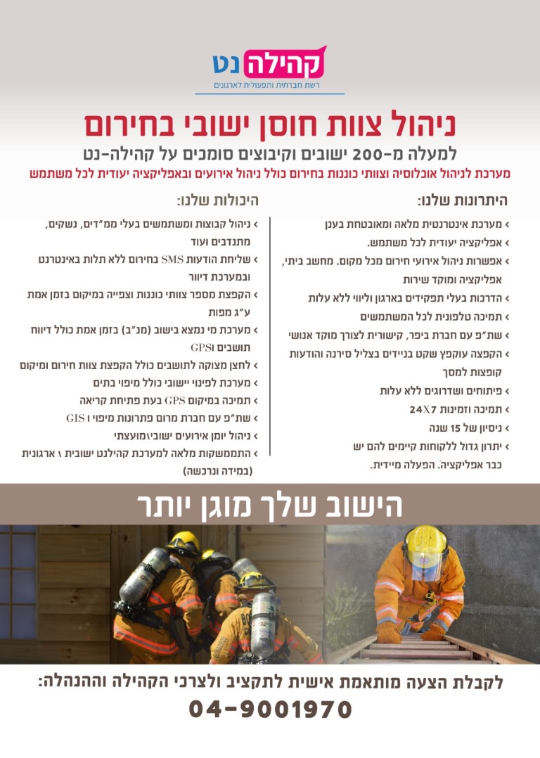 ניתן לבנות ולהגדיר לקבוצה ביישוב לשלוח הודעות לתושבים בלחיצת כפתור.